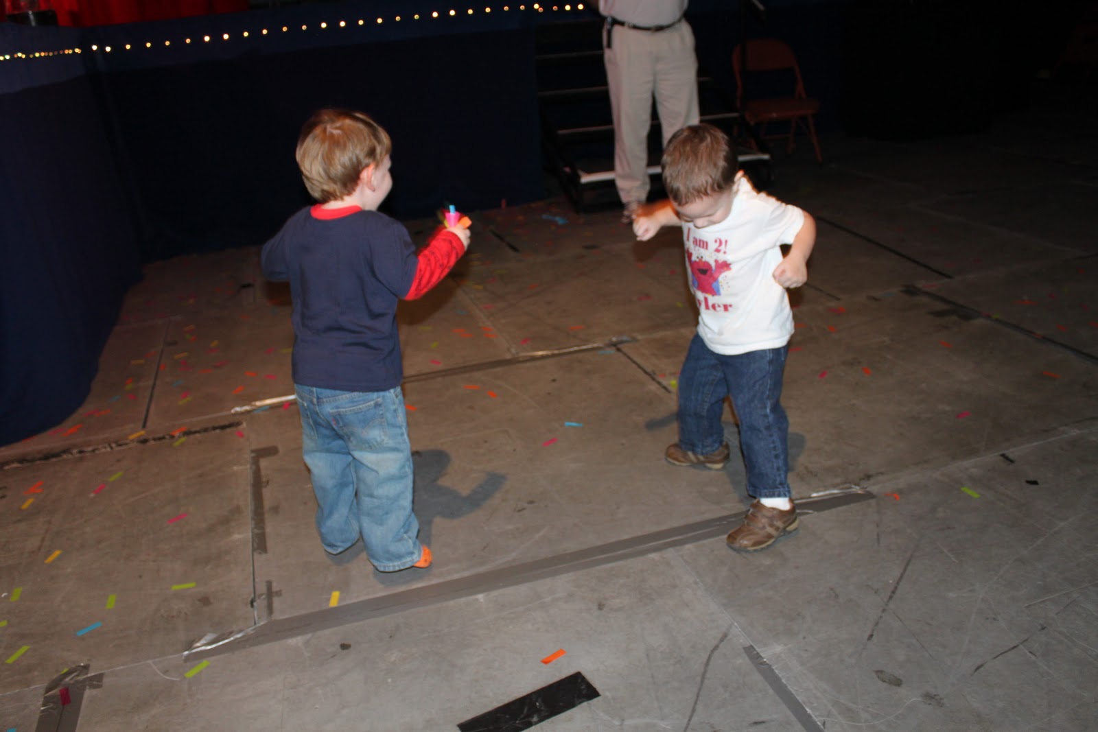 Austin was so happy to see all of his favorite Sesame Street characters dancing and singing on stage right in front of him. Owen sat back and took it all in, too. Of course, the confetti and streamers were the highlight of the evening and Austin gave the cleaning team a hand in their trash collecting. If only he would pick up trash in his own home...