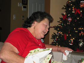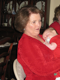 At 1 we packed up and drove to my Aunt Geraldine and Uncle Carroll's house in Cayce for Christmas lunch. Austin was sound asleep by this point but once again, woke up the moment we started to eat. Grandma Susan entertained him until Ryan and I finished our delicious plates and then we sat around and chatted while Austin visited with all of his family. Once again me and Ryan received some great gifts and Austin got some really cute things as well as the promise of a yearly savings bond in his name.