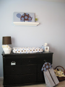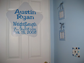 From the day we came home from the hospital until last Friday, Austin slept in his pack n' play which was located in the corner of our bedroom. His nursery is upstairs and our bedroom is down, so we felt uncomfortable when he was only days old being so far away from him. At the beginning we decided that once he turned 6 months we would finally move him into his own room, but we went ahead with it a little earlier than planned and tried it out last Friday night while Ryan was on "duty!" Austin woke up twice but was easily calmed back to sleep and last night he finally slept all the way through the night in his own room without waking!!