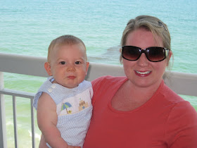 When we weren't playing in the water, Austin was playing in his baby cabana or in the sand. He kept trying to eat shells and fistfuls of sand and when we said "no" and emptied his hand he threw a fit like you wouldn't believe!! Ryan and I couldn't help but laugh as he showed off his little temper eventhough the people around us probably thought we were horrible parents for laughing at our screaming child!! He got over it pretty quickly though when he spotted something new to play with or decided it was time again to try to pull his hat off his head.