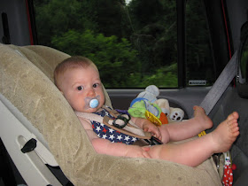 So we started off Thursday morning and 7 hours later we were at our condo in Garden City. No, it does not normally take 7 hours to get from Greenville to the beach, but that's how long it took us due to a stop in Columbia for an early lunch at Rush's (oh how I miss Rush's), a stop for gas and diaper changes and of course the dreaded beach traffic! Austin did pretty well considering he is not a fan of being strapped down for long periods of time but he was very excited when we made it to the beach and finally get out of his carseat for a little while!