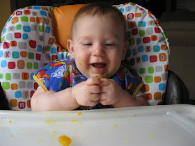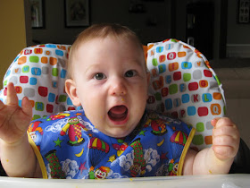 Finally, Austin is getting a little braver and standing on his own a lot and even taking a few steps. He's so good at crawling that he's not that interested in walking but the fact that I get so excited when he starts to walk makes him want to keep trying. I can't wait to get a better video to share. What a huge and exciting accomplishment for my little man!!