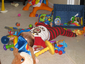 This just had to stop!! So, this weekend Ryan and I tried something a little new and pushed back the morning nap until 11:30 and then didn't put him down for an afternoon nap at all. It worked like a charm!!! Austin slept for 3 hours Sunday afternoon and then was oh so ready for bed by 7:30 that night! I actually had to wake him up at 8:15 this morning after he slept like a rock all night long.