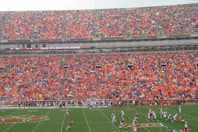 We had a rain-free rain delay for a good 45 minutes where Ryan and I just sat in our seats and talked and people watched. As luck would have it, however, as soon as the rain delay was over and the teams came back onto the field, just a few snaps later the rain started pouring again, even harder than before and a 2nd weather delay was called! At that point we just decided to leave instead of sitting around for another hour in the rain but we were able to hear the conclusion of the game on the radio just as we pulled into our driveway around 6pm. I think that game went down in the books as the longest game in Clemson history!