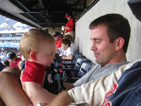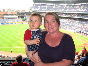 Anyway, the game started out wonderfully with beautifully cool weather and only a few clouds, but around the 4th inning the skies in Atlanta started to resemble the ones in Clemson from the day before! They played in pouring rain for quite awhile until puddles were forming on the field and they finally had to call the game for a weather delay. We were lucky to be sitting in the covered club section and not affected by the wet weather, but the delay made for another extended sporting event and since we were 2 hours from home this time we had a little boy who didn't make it to bed until 11pm!!!