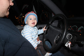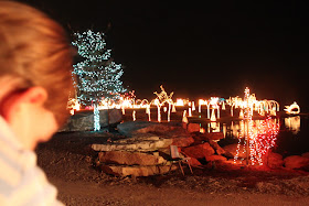 So, once we made it in the park, we brought the boys up front with us to sit and cruised around looking at all the lights. Even more than sitting in the front seat of the car while moving, Austin and Owen loved looking at all the beautiful Christmas scenes and colored lights we encountered as our car crawled through the expansive park. Owen was in a trance and Austin was about halfway out the window "oooo-ing and ahhh-ing" at everything he saw.