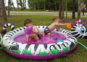 Owen may not get to take swim lessons, but he's getting plenty of pool time this summer!!