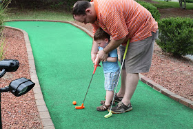 Owen thoroughly enjoyed mini golf as well. He's going through that stage now where a ball is one of the greatest things invented and loved dropping it in the hole and then fishing it out. We let him "walk the course" with us and he couldn't have been happier.