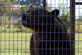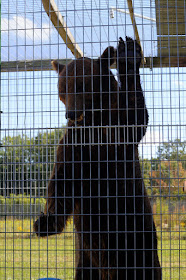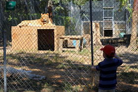 When we told Austin we were going to see some tigers he said, "We're going to Clemson?!" Man, that boy sure knows how to make his daddy smile! Not until we got there did he realize we were going to see actual tigers and not watch a football game. We spent several hours just wondering around and watching the animals. Many of them were sleeping to which Austin continuously yelled "wake up!" Owen was pretty amused and didn't even attempt his baby Houdini tricks of wiggling free from Ryan's arms and remained content while being held and looking into each enclosure. Austin, who has never been extremely taken with animals of any kind (and would probably rather watch the Clemson Tigers play football), got a little bored of seeing cage after cage of animals just sitting there or sleeping...but livened up a little when we happened upon the bears. We were lucky to walk up on the two grizzly bears, Brutus and Cleo, right after they had their baths. The trainer was still there and was extremely nice and willing to get the bears to show us some tricks. Brutus the bear was very entertaining as he showed us his teeth, stood up on his hind legs and begged for clumps of dirt the trainer had in his hands. Brutus was my favorite.