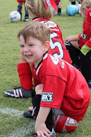Last Saturday, before we took off for Ryan's birthday weekend, we went to Austin's first soccer practice! He's playing pee-wee soccer this season on a team of 3 and 4 year olds and it's just about the cutest thing I have ever seen. Austin chose to be lucky #7. He's the youngest on the team this year because he just made the cut, and it's a little obvious, but I think he'll start to blend in more as the season progresses.