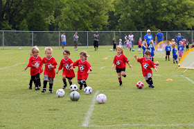 Austin pretty much tuned out the last 15 minutes of practice and did his own thing. I guess he found soccer just about as interesting as most Americans. That, or the fact that he's 2 and has the attention span of a fish right now. He started watching the kids playing t-ball on an opposite field and told us he was ready to go play baseball now. Unfortunately we have to wait until next year for t-ball...